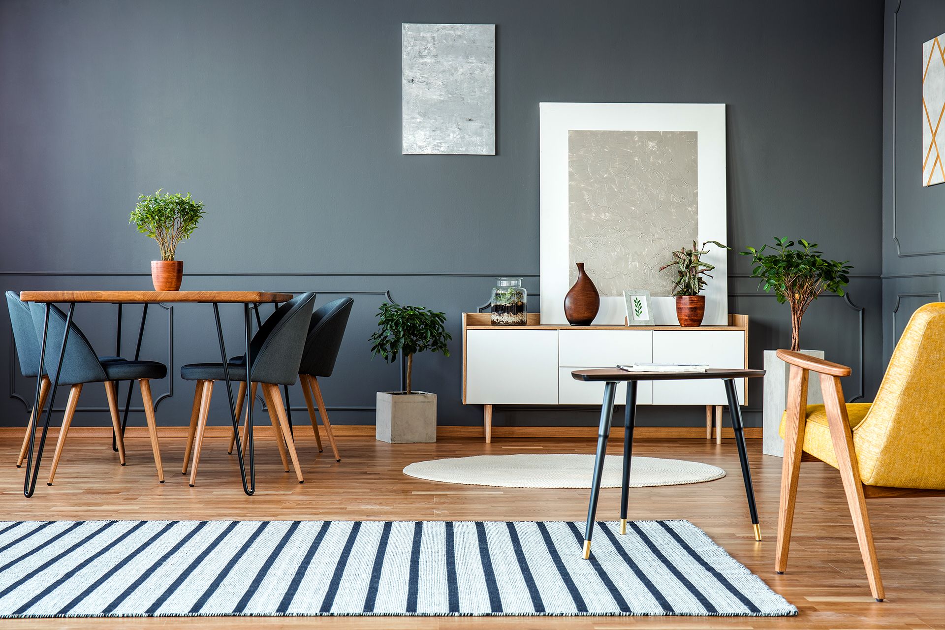 Modern Luxury Home in the Marina. The simple facade of this 5 bedroom, 4.5 bathroom Marina home belies the amazing interior within. Sleek and chic, this 3,945 sq. ft. home (per graphic artist) is straight out of the pages of an interior design magazine. Through the custom redwood entry door, you are immediately greeted with rich hardwood floors; glass and aluminum hand rails; sleek shadow baseboards; and an incredible experience to come. Up the stairs, on the main level, the living room, dining room, kitchen island, and seating area are open, making the space perfect for entertaining.